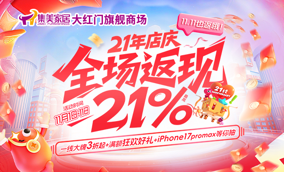 21年店慶全場(chǎng)最高返現(xiàn)21%-集美家居大紅門旗艦商場(chǎng)